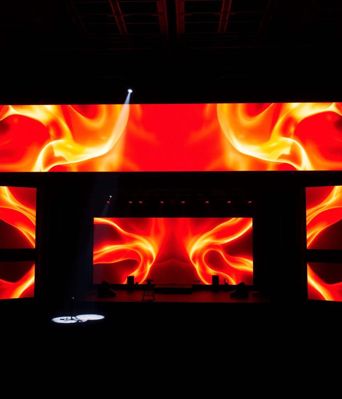 Indoor and outdoor LED panels at multiple pixel pitches, processing, switching and PPU services for broadcast-grade output.